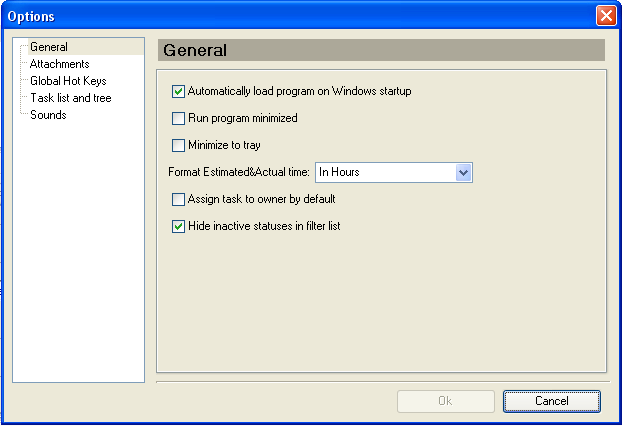 - To display working time in hours go to Tools->Options, open tab “General” and in the field “Format Estimated&Actual time” select “In Hours”