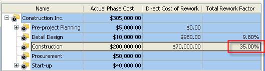 Total Field Rework Factor = Direct Cost of Field Rework/Actual Construction Phase Cost