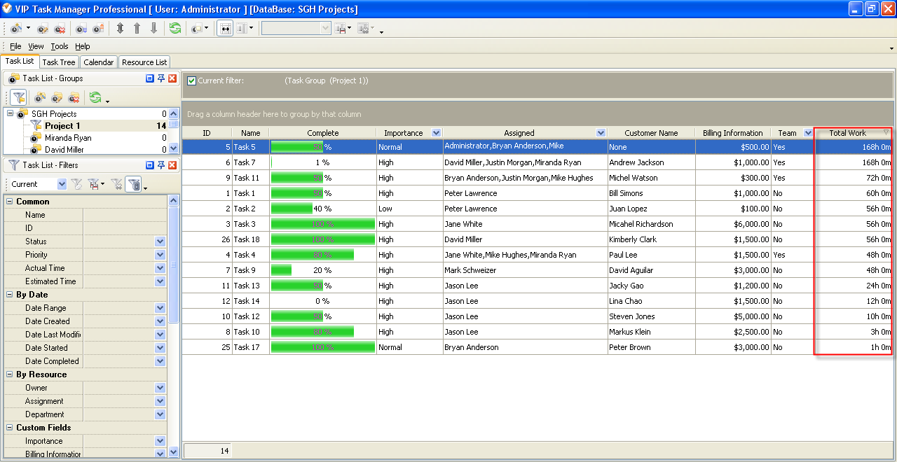 field Total Work on Task List or Task Tree please go to Task List or Task