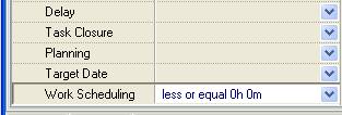 - Set filter for the custom field “Work Scheduling”: ‘less or equal 0h 0m’