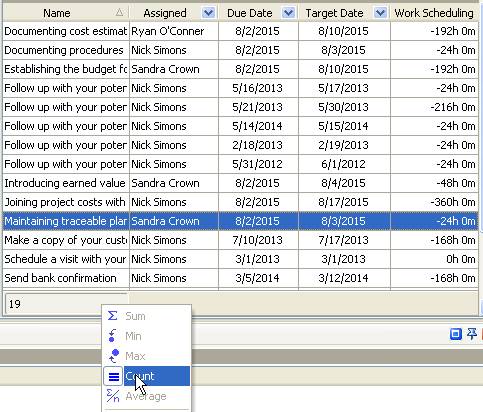 - Right click under any column name on task grid and select “Count“