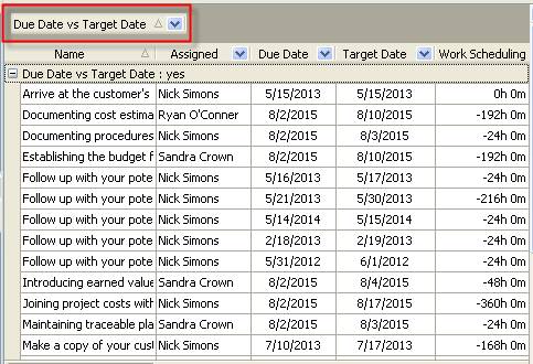 - Drag and drop column header “Due Date vs Target Date” to the top of your task list.