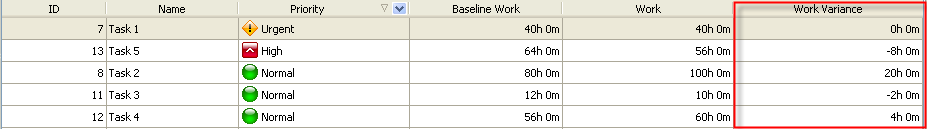 example, you scheduled work 4 months ago. by viewing Work Variance custom field