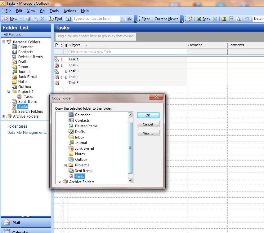 Folder List of MS Outlook can be used for creating templates of tasks by copying existing tasks to a new folder. All parameters of existing tasks will be copied, so you will get the same tasks only in new folder. Still such parameter as Date and Time should be changed automatically in templates, while in MS Outlook users have to change Date and Time manually for each task, which is very time consuming.