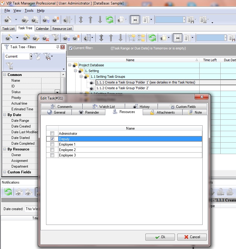 VIP Task Manager features Watch List that supports task supervision and allows setting supervisors for tasks. As a project manager, you can share managerial responsibilities with your assistants and deputies by assigning task supervisors. Watch List lets you define one or several supervisors and each of them will receive notifications of task updates. The software sends both email and pop-up notifications to supervisors. |