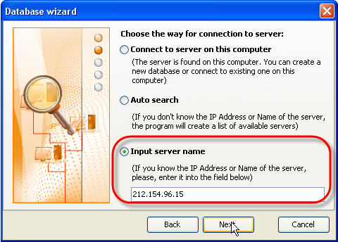 - When connecting to server select 'Input server name' option and enter Static (Outer) IP Address of the server computer
