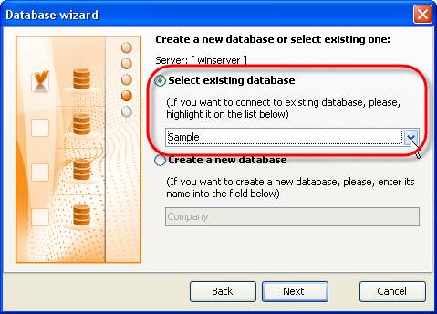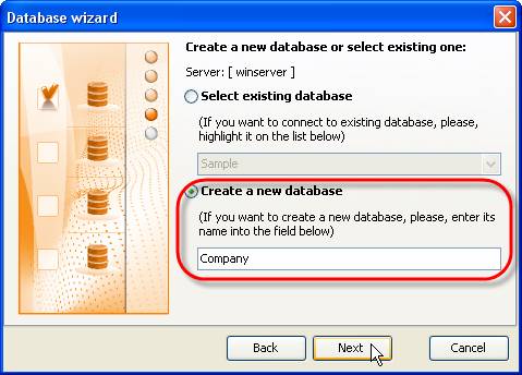 - Create a new database or connect to existing one
