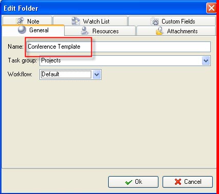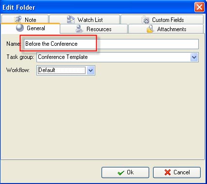 - Create task group "Conference Template"
