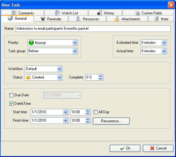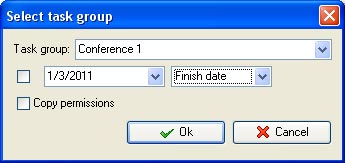 Note that the first task in the subgroup should be assigned to Start/Finish date at X-days before the Conference date (for example initial task "Admissions to email participants 6-months packet" can be planned for 180 days before the conference) and the last task in the subgroup should be assigned to Start/Finish date of the conference beginning.