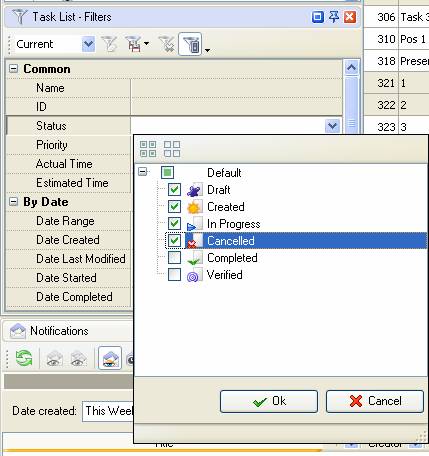 - To display only uncompleted tasks, on panel “Task List – Filters” or “Task Tree – Filters” in section “Common” check all statuses except “Completed” and “Verified”