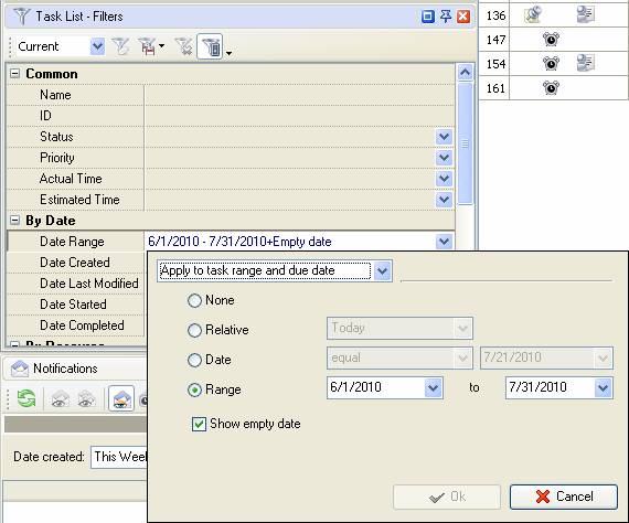 - To show tasks for a certain period, on panel “Task List – Filters” in filed “By Date” select date range for tasks you would like to display, for example from 06/1/2010 to 06/30/2010
