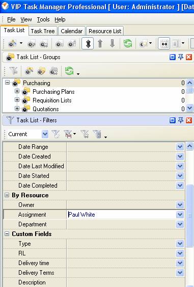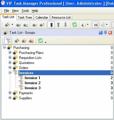 - To show tasks that belong to certain task group, double click required task group on “Task List-Groups” panel.