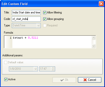 - In "Title" field enter the name for custom field, for example, India Start Date and Time