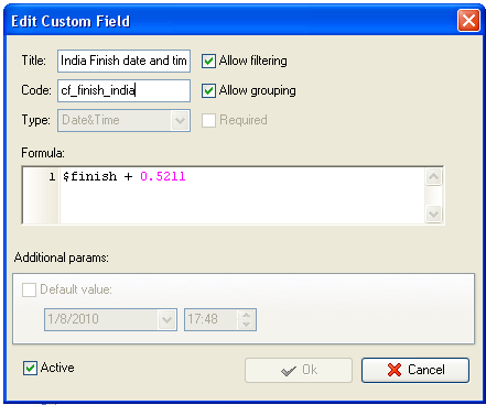 - Follow the similar instructions to create the custom field that displays Finish Date and time in another country.