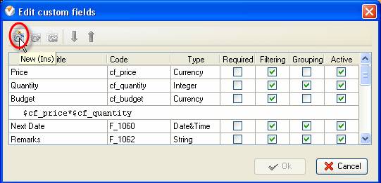 - Click on ‘New' button on the toolbar of ‘Edit custom fields' dialog