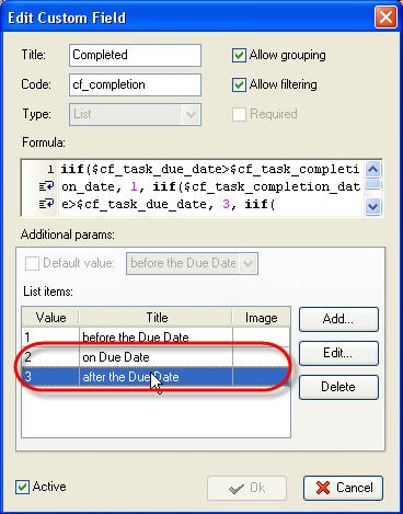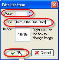 - In the same way add ‘on Due Date' and ‘after the Due Date' titles with ‘2' and ‘3' values correspondingly and click 'Ok'