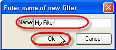 - Enter filter name into ‘Name’ entry field and click ‘Ok’