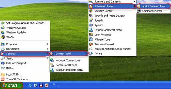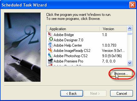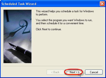 - Go to Start - > Settings -> Control Panel -> Scheduled Tasks -> Add Scheduled Task