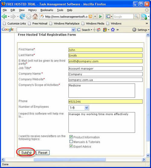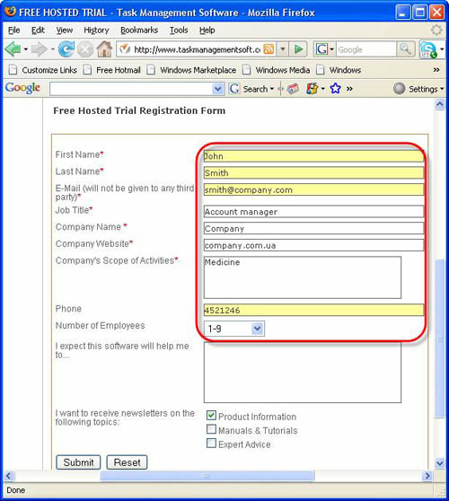 - Enter the data about you and your company into the entry fields of registration form