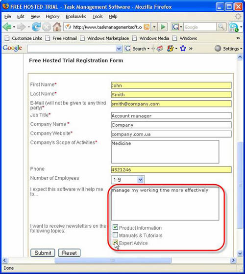 - Enter what you expect from our software and check the topics of newsletters you want to receive.