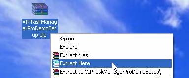 - Unzip VIPTaskManagerProDemoSetup.zip file