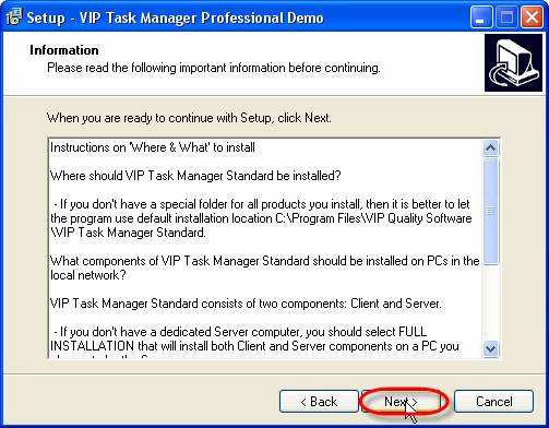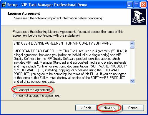 Double-click on VIPTaskManagerProfessionalDemoSetup.exe file to start the installation