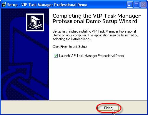 Check ‘Launch VIP Task Manager Professional Demo’ option if you want to start the application at once after installation and click on ‘Finish’ button