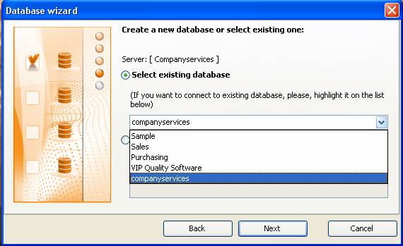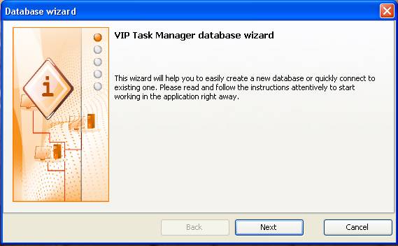- Launch the application to show Database Wizard (If no Database Wizard Window appears, close the application and double click on the program icon on the desktop while holding CTRL until Database Wizard appears).