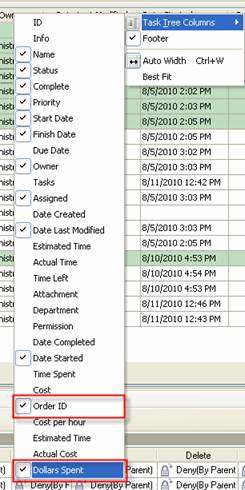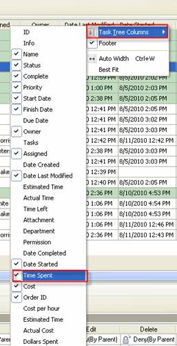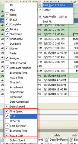 - To select required custom field column right click on column name, select “Task Tree Columns” and check the required custom field.