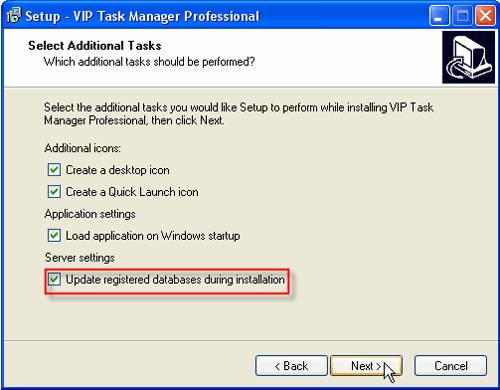 3. Check “Update registered databases during installation”