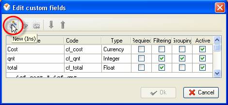 - Click ‘New’ button in ‘Edit custom fields’ window