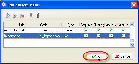 - Click ‘Ok’ in ‘Edit custom fields’ window