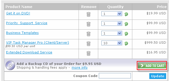 Click "Add To Cart” for the option “Backup CD of your Order for $9.95 USD” in your Order Form.