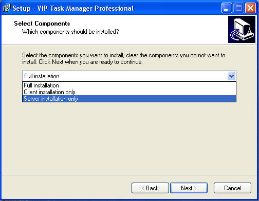VIP Task Manager can be used both as multi-user software and single user software. As multi-user software it can be used in networks either with dedicated server computer or without it. So, basically, there are three ways of VIP Task Manager installation: