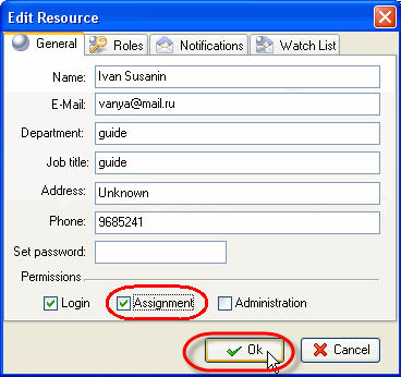 - In ‘Edit Resource’ dialog check ‘Assignment’ option and click 'Ok'