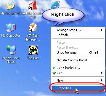 - Right click on desktop and select ‘Properties’ from drop-down list