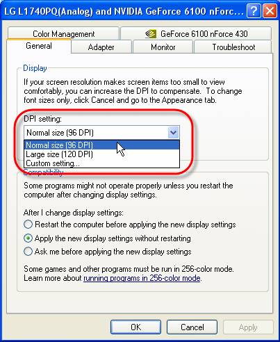 - Open ‘DPI Setting’ drop-down list and select ‘ Normal size (96 DPI)’
