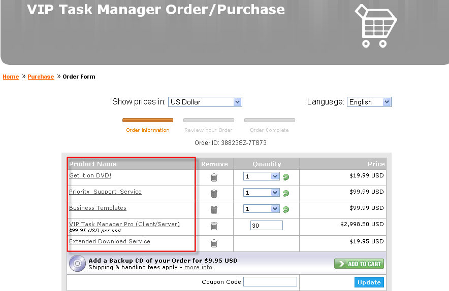 This message means that you removed the products VIP Task Manager Standard or VIP Task Manager Professional and additional options (“Get it on DVD”, Priority Support Service and Business Templates) from your order form while placing the order.